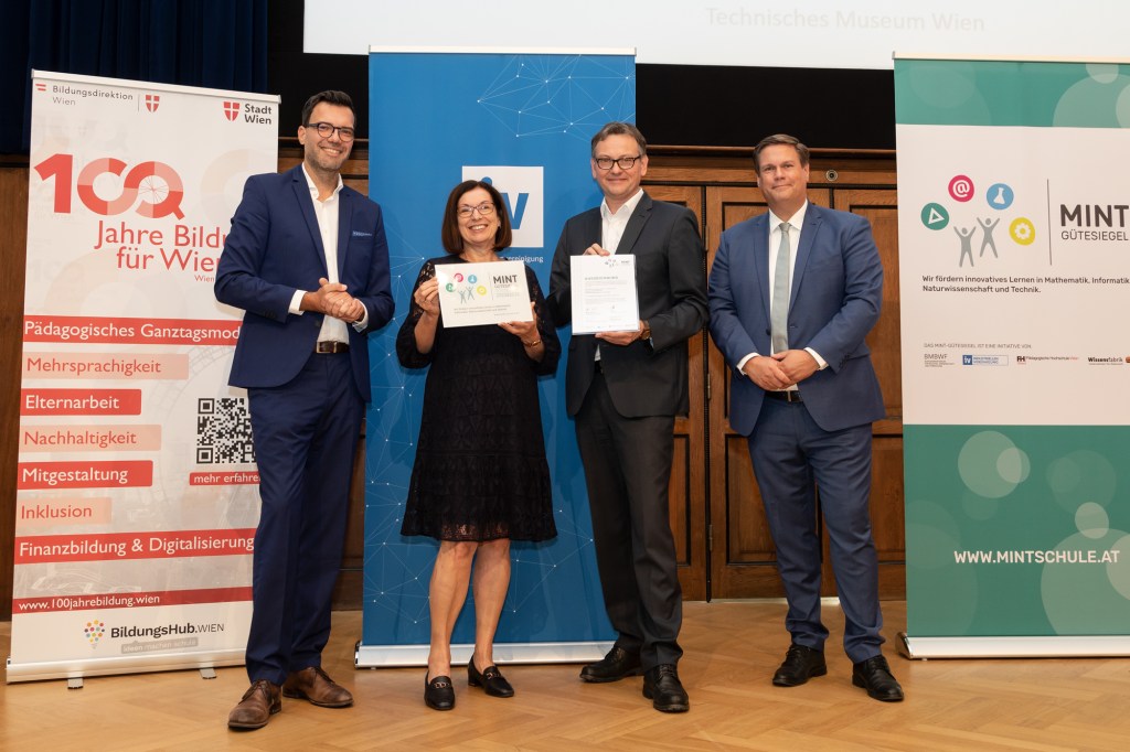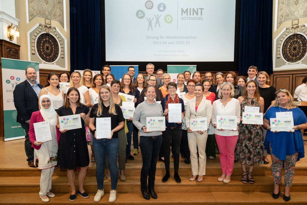 Es freut uns sehr, dass unsere Schule erneut mit dem MINT-Gütesiegel 2022-2025 ausgezeichnet wurde. Die Verleihung fand am 13. September 2022 im Festsaal des Technischen Museums statt.