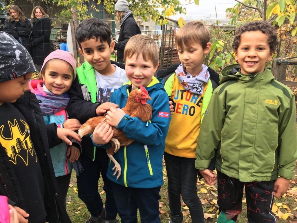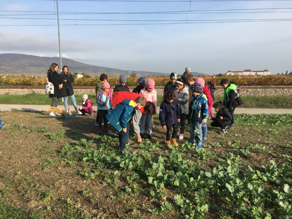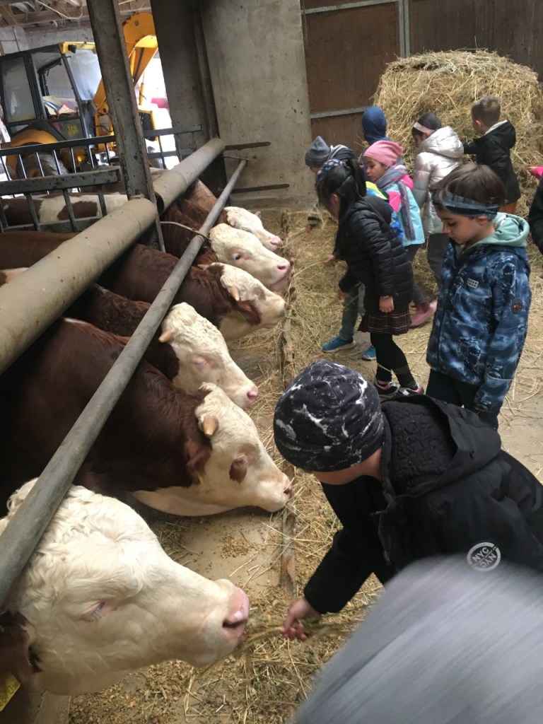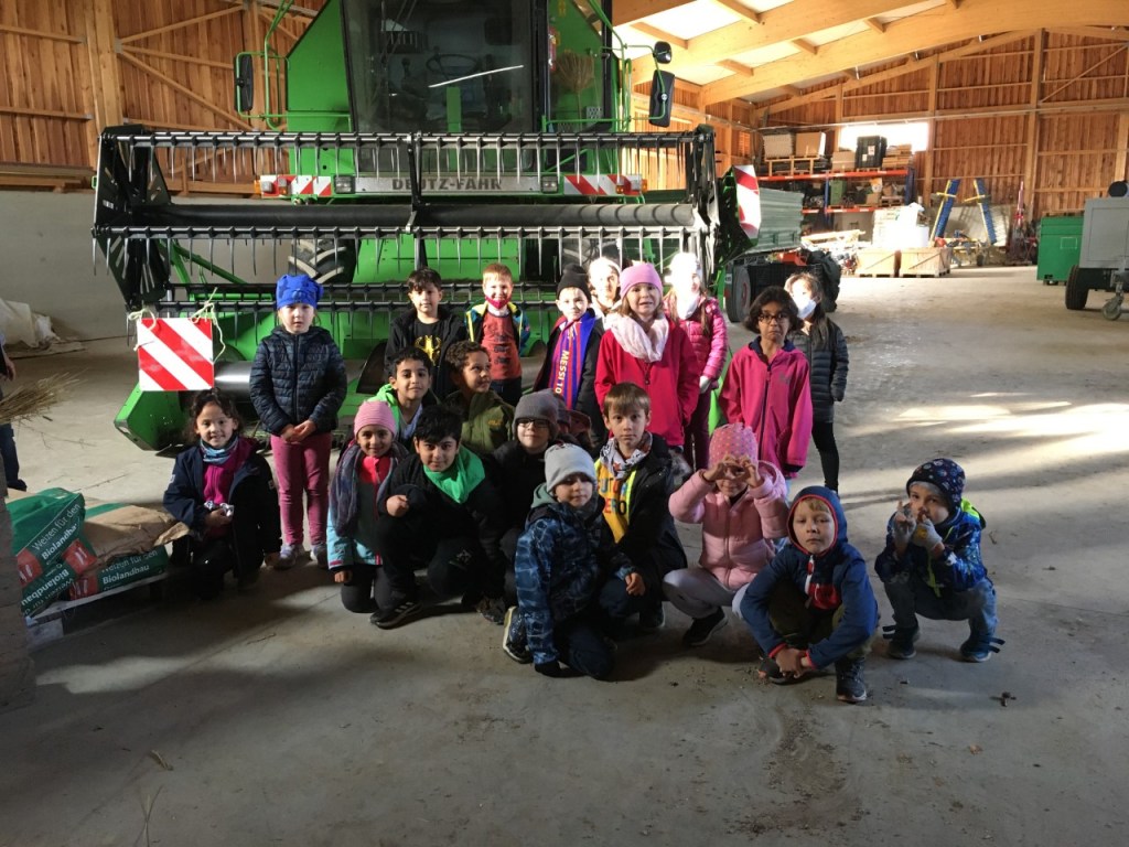 Bei wunderschönem Herbstwetter verbrachten die Kinder der 1A einen Vormittag am Bauernhof der Familie Osterer. Wir durften am Feld Gemüse kosten, viel Neues über die Biolandwirtschaft erfahren, im Stall Stiere füttern, Hennen streicheln und die großen Traktoren und Mähdrescher bewundern.
