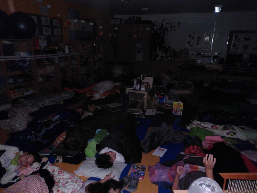 Bald darauf schliefen wir ein. Manche schliefen schnell ein, andere brauchten ein bisschen länger. Bei kleinen Heimwehattacken trösteten wir uns gegenseitig.