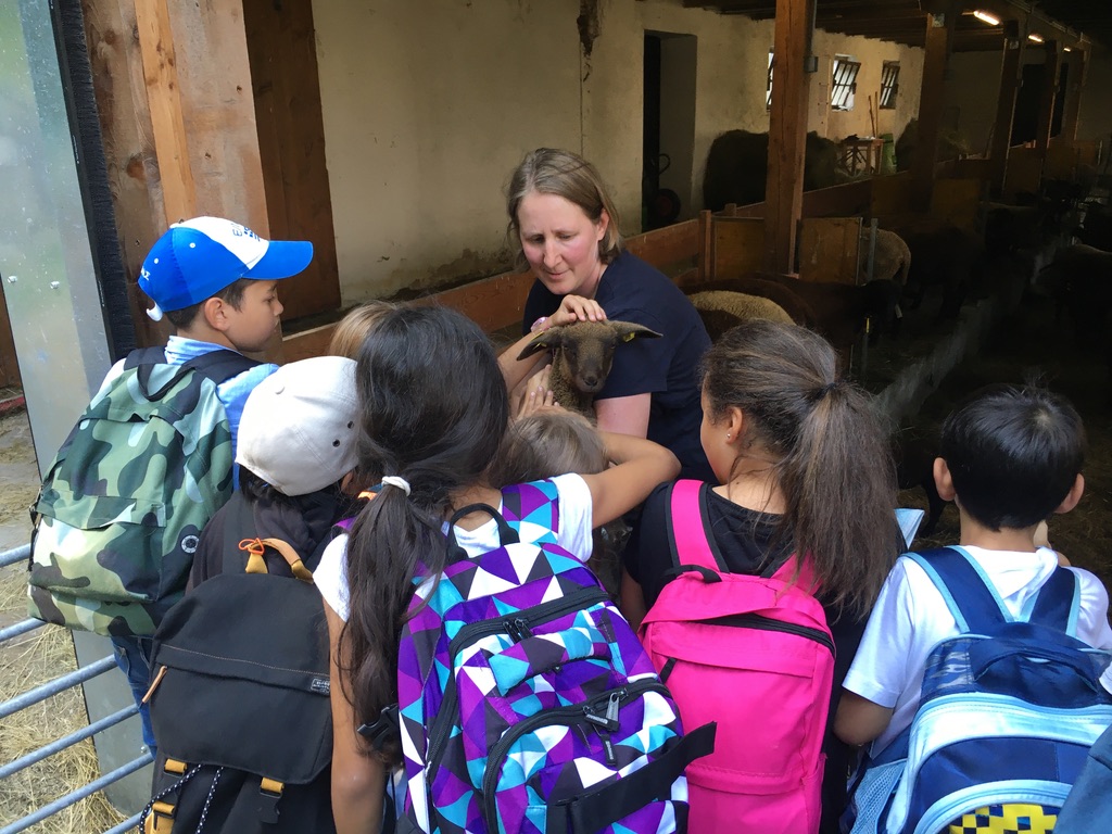 Gleich nach der Ankunft im Quartier wurde der riesige Erlebnisspielplatz erkundet und die Zimmer wurden bezogen. Am Nachmittag wanderten wir trotz Regens zur Aussichtswarte nach Hagenberg und besichtigten einen Bauernhof.