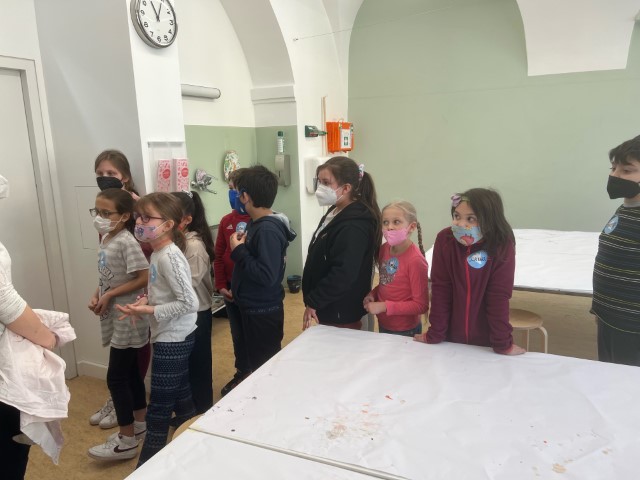 Im März 2022 war die 3B beim Projekt Porträtmalen in der Albertina. Dort gab es zuerst eine Führung durch die Ausstellung und dann konnten die Kinder selbst ihr Porträt erstellen.